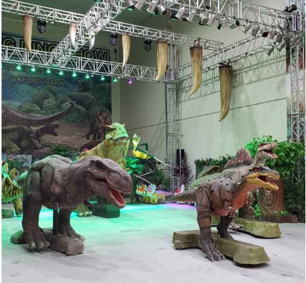 As mentioned earlier, Champions kids club is located outside of the indoor mall, and Dinosaur World is inside the mall on the first floor. Dinosaur World includes Dinosaur shows on the hour, video games, rides, bounce house slides, sandboxes, and more.
