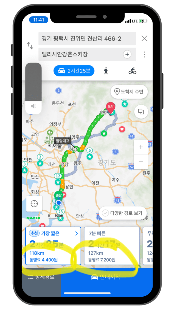 If you are not fond of using the Korean Expressway and HiPass system, both Naver Map and Kakao Map apps allow users to set trip preferences including routes that don’t use tollways.