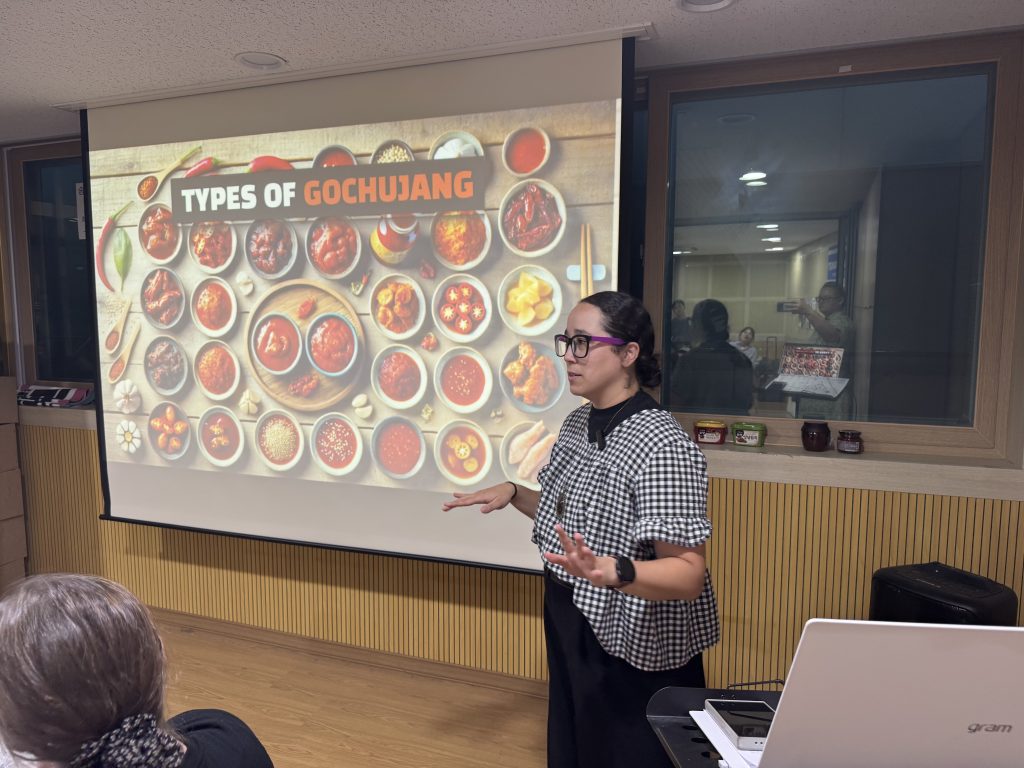 Do you want to learn more about gochujang? What is its history, how it’s made, and what is it used for? Recently South of Seoul volunteers had the great privilege of helping host a Traditional Market Vendor Visit at the Songtan Market in Pyeongtaek-si. The evening included a brief lecture on the history of gochujang, a visit to a market noodle restaurant for a gochujang-making demonstration, and a gochujang sampling session. Here is what we learned.
