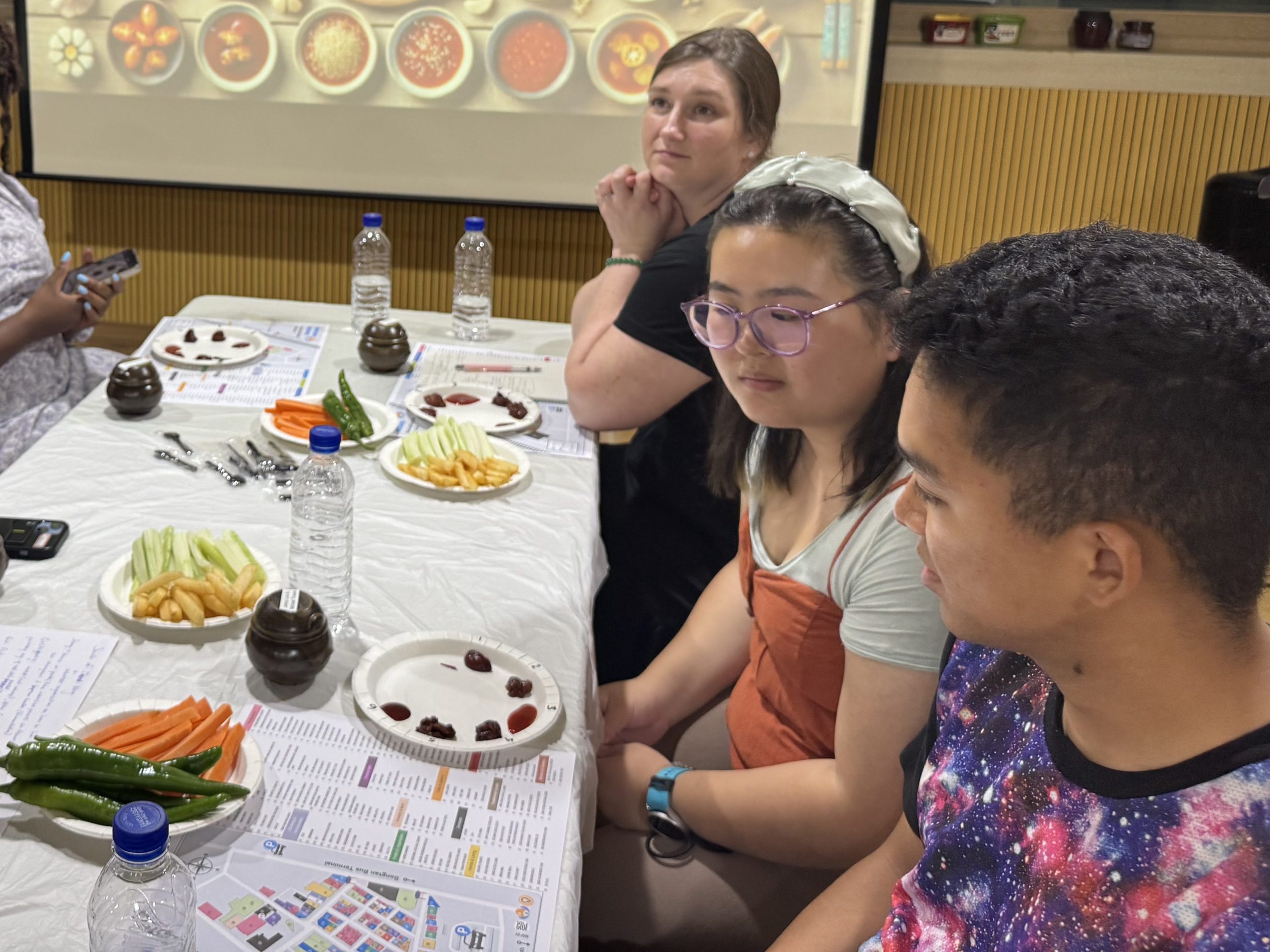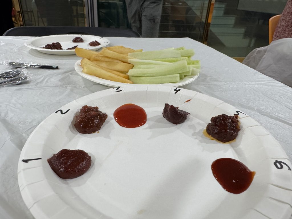We taste-tested homemade gochujang, store-brand gochujang, apple gochujang, beef gochujang, samjang, and a few others. We tried them with carrots, apples, and cucumbers. Everyone thought that it would be hard to all the sauces but we ended up gobbling them all up.