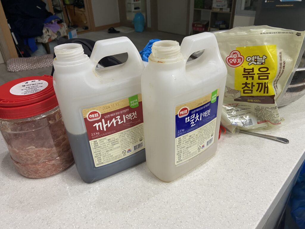 - Fish Sauce: A staple in many Asian cuisines, fish sauce is commonly used for its savory depth. We learned kimchi from our “older sister” who is from Jeju. She loves fish sauce in all her kimchi so now we do as well. She likes to use chamchi (tuna) fish sauce or even Thai fish sauce.
