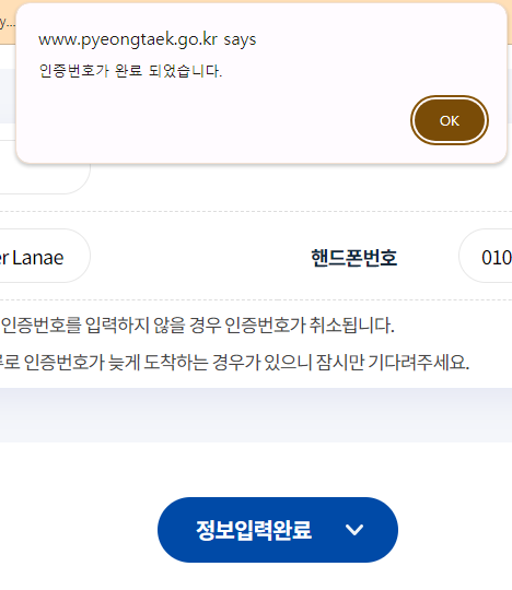 Once you submit the above form you may be asked for a verification number. Remember that all of this will occur with Korean prompts. When we did it, we took screenshots and translated them with Papago to understand each step of the process.