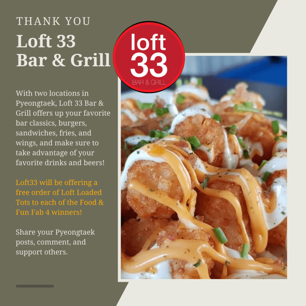 Are you a business interested in contributing to the Pyeongtaek Food & Fun Fab 4 Rewards program? Then, read more here or get signed up right away Click to Contribute to the Food & Fun Fab 4 Rewards