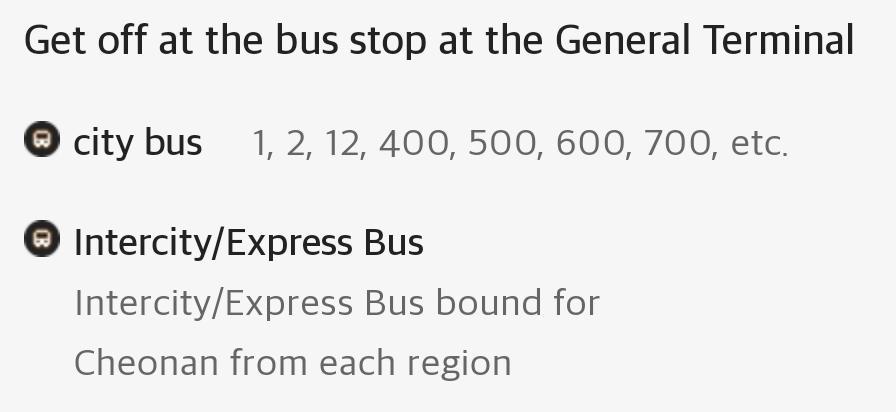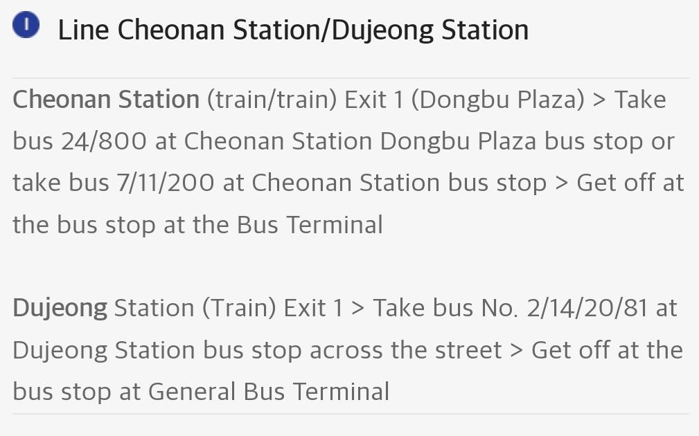 However, the Cheonan Express Bus Terminal sits right next to Shinsagae mall. The following information may help you take public bus transit to the Cheonan Shinsagae Mall.