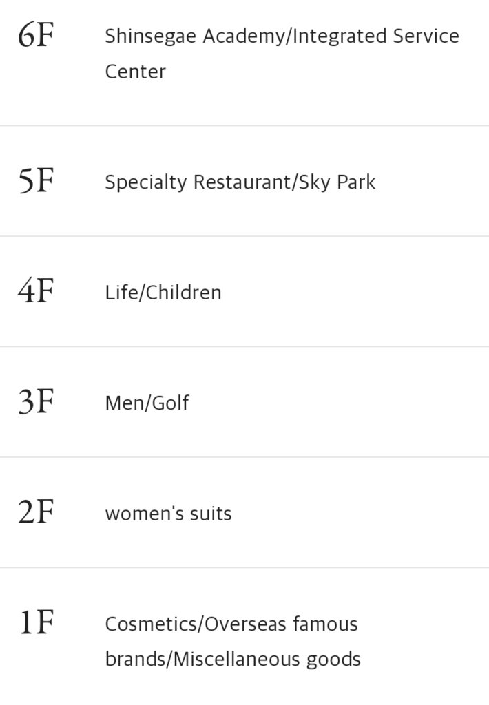 Shinsegae in Cheonan is a department store attached to a mall. The department store includes many moderate to high-end clothing and home goods departments. The mall includes such things as H&M, E-Mart, a bookstore, a food court, a movie theater, and an outdoor sculpture park and art gallery. Additionally, the area around Shinsagae Department Store
