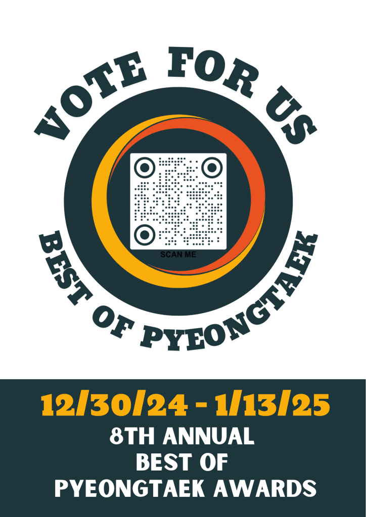Get ready to show some love! This is the 8th year of the Best of Pyeongtaek Poll, and your votes mean the world to local businesses. Help your favorites win big! Let’s make this year’s poll the best yet. Click here to vote now!
